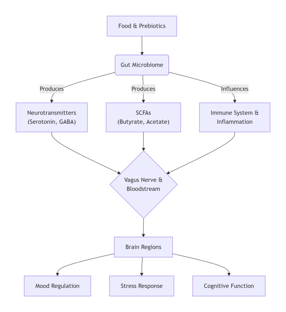 - Your gut microbiome produces neurotransmitters (like serotonin and GABA) and communicates with your brain via the vagus nerve, hormones, and immune messengers.
